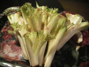 گیاهی با برگهای خاردار و ساقههای ضخیم شبیه به کرفس است. از برگهای سبز آن به صورت خام در تهیه سالاد و از ساقه آن در تهیه خورش استفاده میشود. این گیاه، طبع گرمی دارد و بسیار نیرو بخش و مقوی قلب است. برگهای این سبزی، موجب کاهش چربی خون شده و به دلیل فیبر نامحلول، بسیار ملین و برای پایین آوردن قند خون سودمند است. اینولین آن باعث افزایش باکتریهای مفید دستگاه گوارش شده و از سرطان روده باریک میکاهد. آنتی اکسیدانهای موجود در آن نیز پوست را در برابر سرطان محافظت میکند.