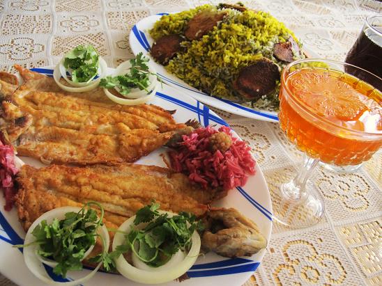 سبزی پلو با ماهی قزل آلا